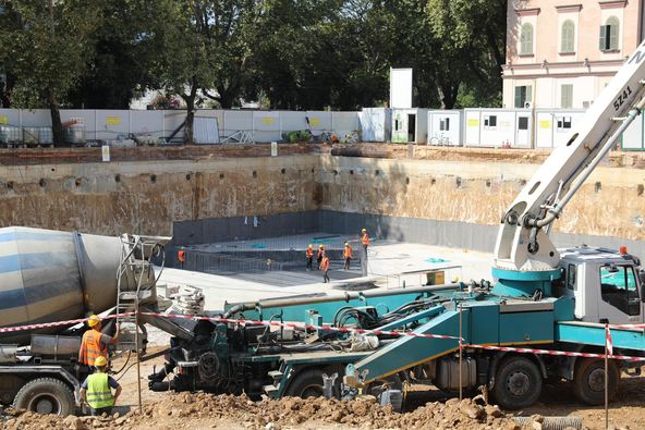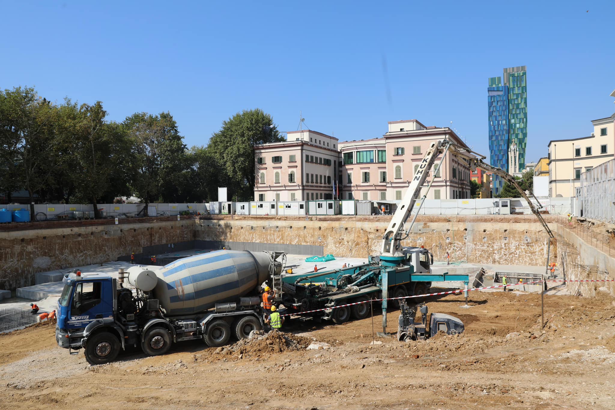 Puna më e madhe për hedhjen e themeleve të Teatrit të ri Kombëtar ka përfunduar, ndërsa punohet me ritme të mira që brenda vitit 2025 të mbarojë ndërtimi i karabinasë.
