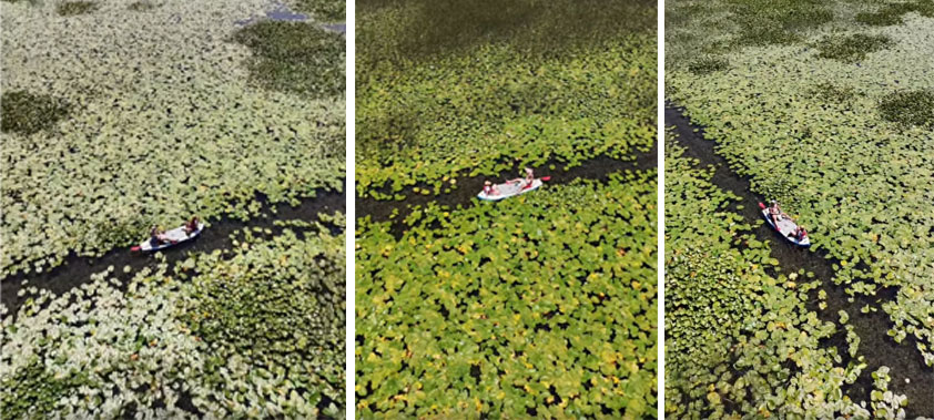 Pamja është e gjallëruar nga lëvizja e një kanoeje që, si një penel mbi telajon e një pikture të gjallë, çan qetësinë e kësaj lëndine ujore dhe lë pas një gjurmë që i shton poezinë çastit. Videoja, më shumë se një përshëndetje, është një ftesë për të ndalur për një moment dhe për t’iu dorëzuar hijeshisë së natyrës shqiptare, një kujtesë e butë se edhe brenda zhurmës së përditshme, ekziston një cep i paqtë ku bukuria flet pa fjalë.