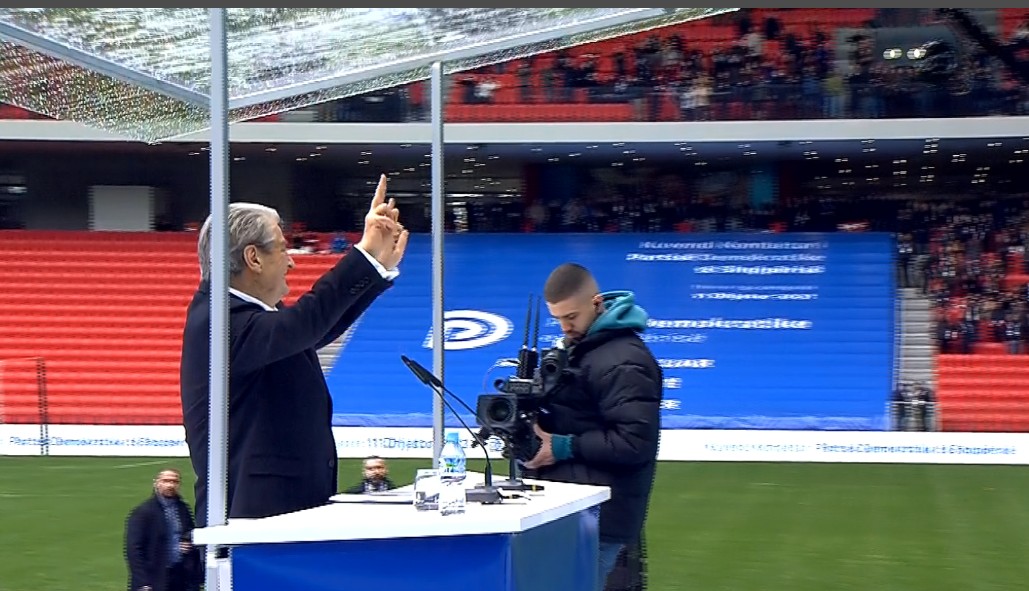 “Të dashur delegatë dhe delegate të Kuvendit më madhështor, më të bukur, më triumfues, më mahnitës, në historinë e pluralizmit shqiptar në këto 30 vite. Kuvendi që mblidhet si monument i lirisë shqiptare, Kuvendit që mblidhet si monument i rithemelim të PD. Kuvendit që mblidhet si monument madhështor i rithemelimit të PD-së. Kuvendit të parë në histori të kultit të anëtarit të PD, të kultit të lirisë, të anëtarit të lirë. Qytetarë shqiptarë ju përshëndet sot nga kjo platformë me të cilën ne vendosim që të rithemelojmë forcën e madhe politike të PD”, tha Berisha.