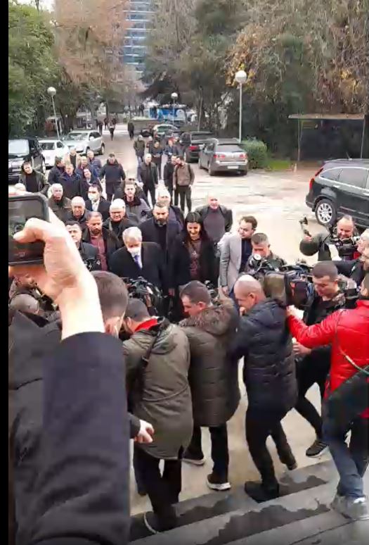 Berisha është i shoqëruar nga Komisioni për Rithemelimin e PD-së, Klevis Balliu, Tritan Shehu, Flamur Noka, Edmond Spaho, Gent Strazimiri, Floriana Garo, etj.