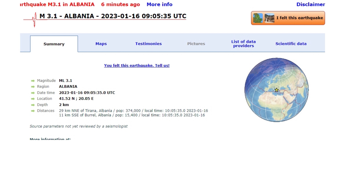 Sërish lëkundje tërmeti në Shqipëri. Tërmeti ka pasur magnitudë 3.1 të shkallës Rihter në afërsi të Klosit. Ndërkohë që thellësia ka qenë 2 kilometra. Pas tërmetit 4.7 Rihter të orës 22:35, përgjatë gjithë natës ka patur edhe 8 pasgoditje por kanë qenë me intensitet më të ulët.