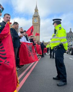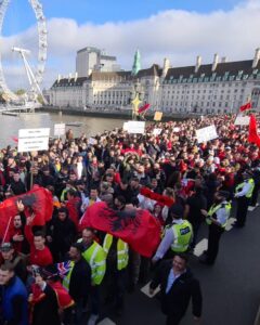 Shqiptarët bëjnë histori në Londër, protestojnë me flamuj kombëtarë