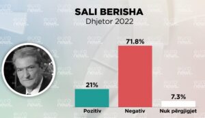 Për kryetarin e Partisë Demokratike mendimi negativ është më i lartë se për kryeministrin me 71.8%. Ata që kanë mendim pozitiv për Berishën janë 21% dhe 7.3% nuk janë përgjigjur.