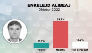 Për kryetarin e grupit parlamentar të Partisë Demokratike Enkelejd Alibeaj i cili ka krijuar grupimin e tij në selinë blu, 69.7% e shqiptarëve kanë mendim negativ. Ndërkohë 13.7% kanë mendim pozitiv dhe 16.7% nuk janë përgjigjur.