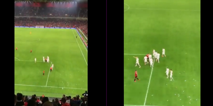 Gjyqtari francez ndërpret ndeshjen duke i futur lojtarët në dhomat e zhveshjes.