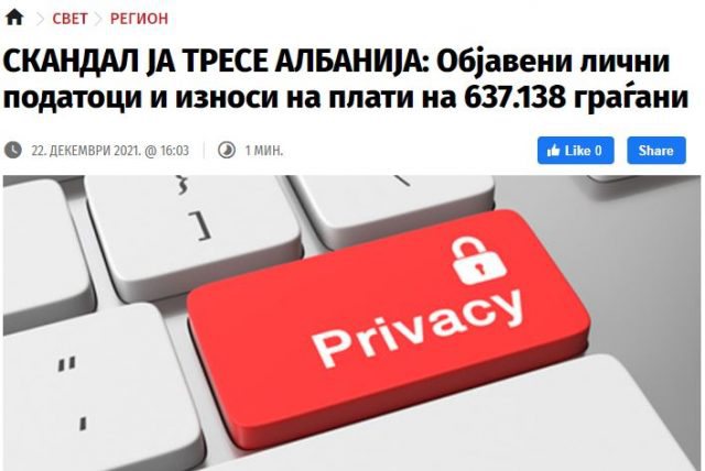 “Skandali trondit Shqipërinë!”. Lajmi ka gjetur vend edhe në Serbi. Këtë herë është media “Kurir” e cila shkruan: “Skandal i rëndë në Shqipëri. Publikohen të dhënat personale dhe shumat e pagave të mbi 63 mijë qytetarëve”.