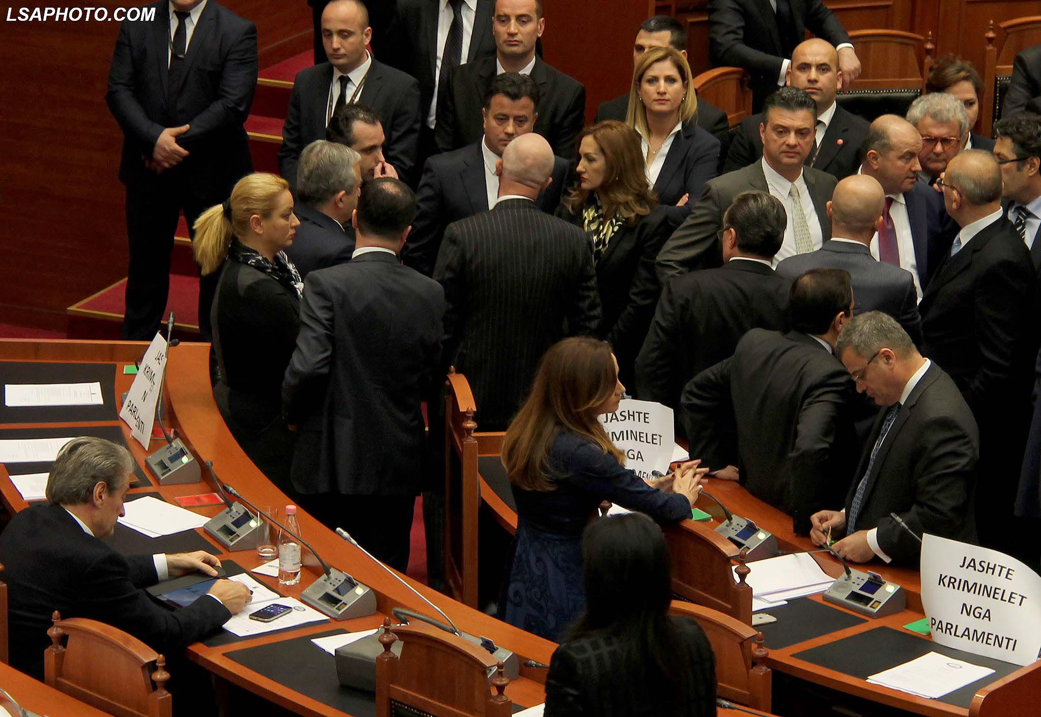 Kaq ka mjaftuar qe drejtuesja e seances, nenkryetarja e Kuvendit, Valentina Leskaj eshte detyruar te nderprese seancen per disa minuta.