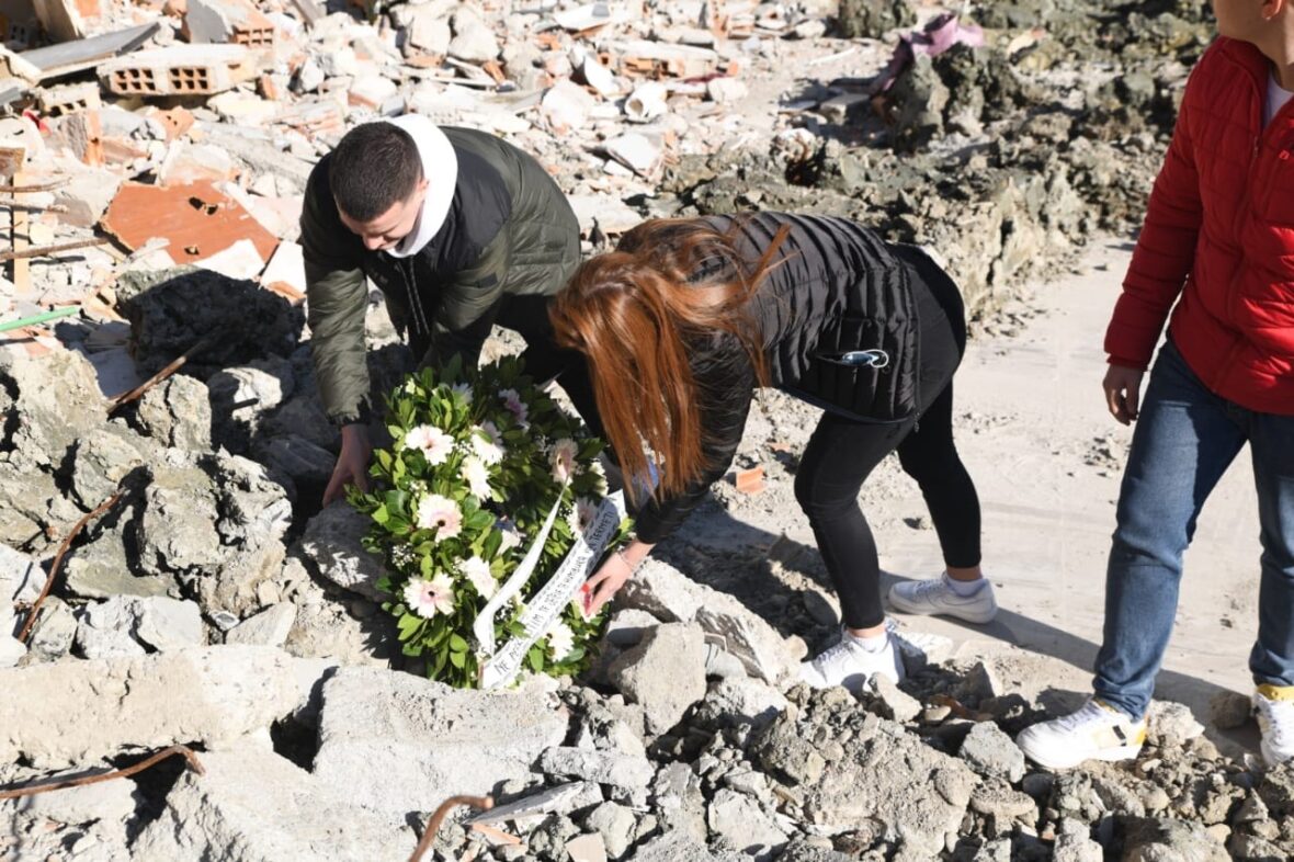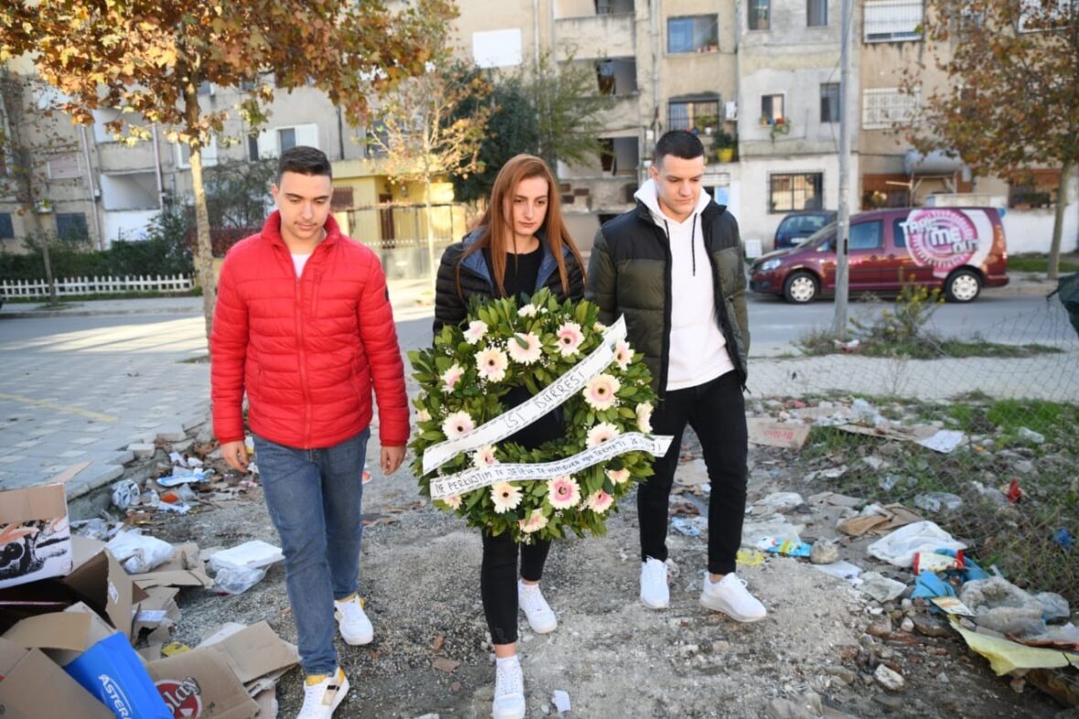 Tërmeti shkaktoi 24 viktima, të rinjtë e LSI-së në Durrës vendosin kurora me lule (FOTO)