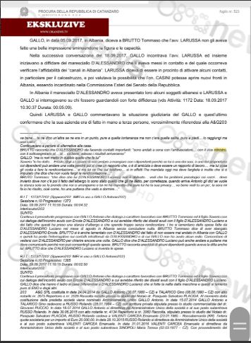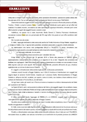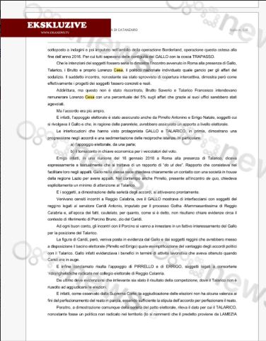 Në dosjen hetimore të Antimafias italiane nënvizohet gjithashtu se sipërmarrësit Saverio Brutto e Francesco Talarico synonin të rikompensonin Lorenzo Cesa me 5% të aferave të tyre.