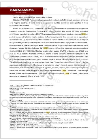 Në përgjimet e antimafias italiane datës 7 korrik 2017 zhvillohet një bisedë në restorantin “Tullio” në qëndër të Romës, mes sekretarit rajonal të UDC, Francesco Talarico, e politikanëve Tomaso Brutto e Saverio Brutto, e sipërmarrësve Antonio Gallo, i cili në pjesën e parë të përgjimeve, fliste për pagesa të 20 për qindëshit në formë rryshfeti për ndërtimet në Tiranë, informon Ora News.
