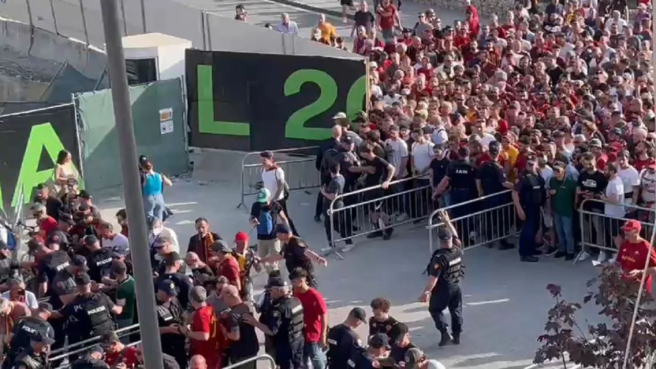 Më në fund tifozët po hyjnë stadiumin “Air Albania”. Radhë të gjata dhe kontrolle të rrepta nga policia dhe sherbimi i kontrollit të UEFA.