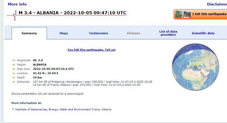 Një tërmet ka rënë së fundmi në vendin tonë me magnitudë 3.4 e shkallës Rihter.