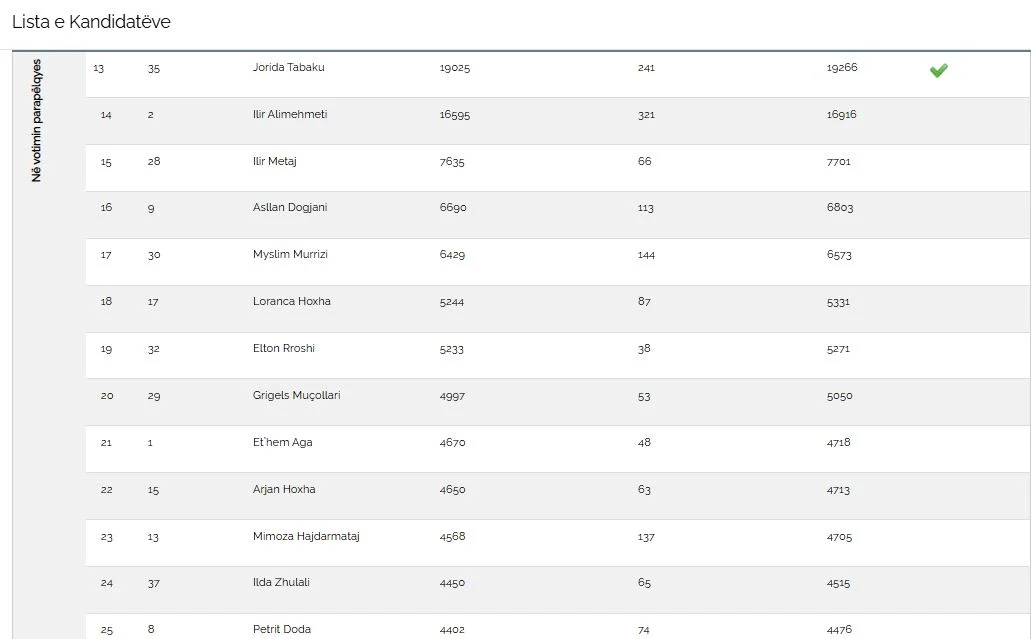 Në Partinë Demokratike, Jorida Tabaku ka fituar mandatin duke kaluar Ilir Alimehmetin me një diferencë prej më shumë se 3000 votash.