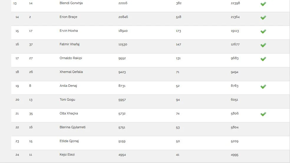Deri tani janë numëruar 6896 nga 42402 vota të diasporës për qarkun e Tiranës, që përfshijnë edhe votat preferenciale për kandidatët.