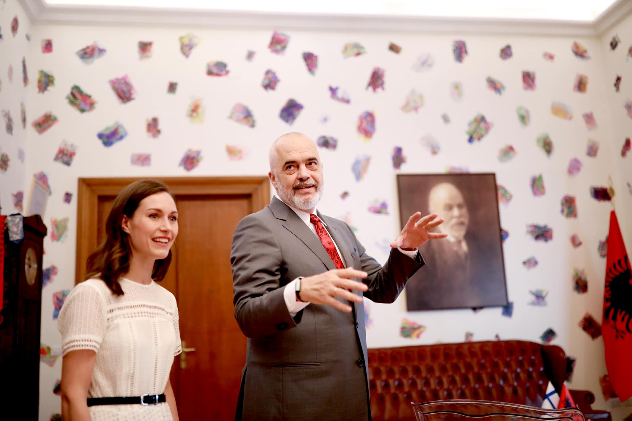 Vizita në zyrë, Rama i dhuron kryeministres finlandeze librin e Lea Ypit (FOTO)