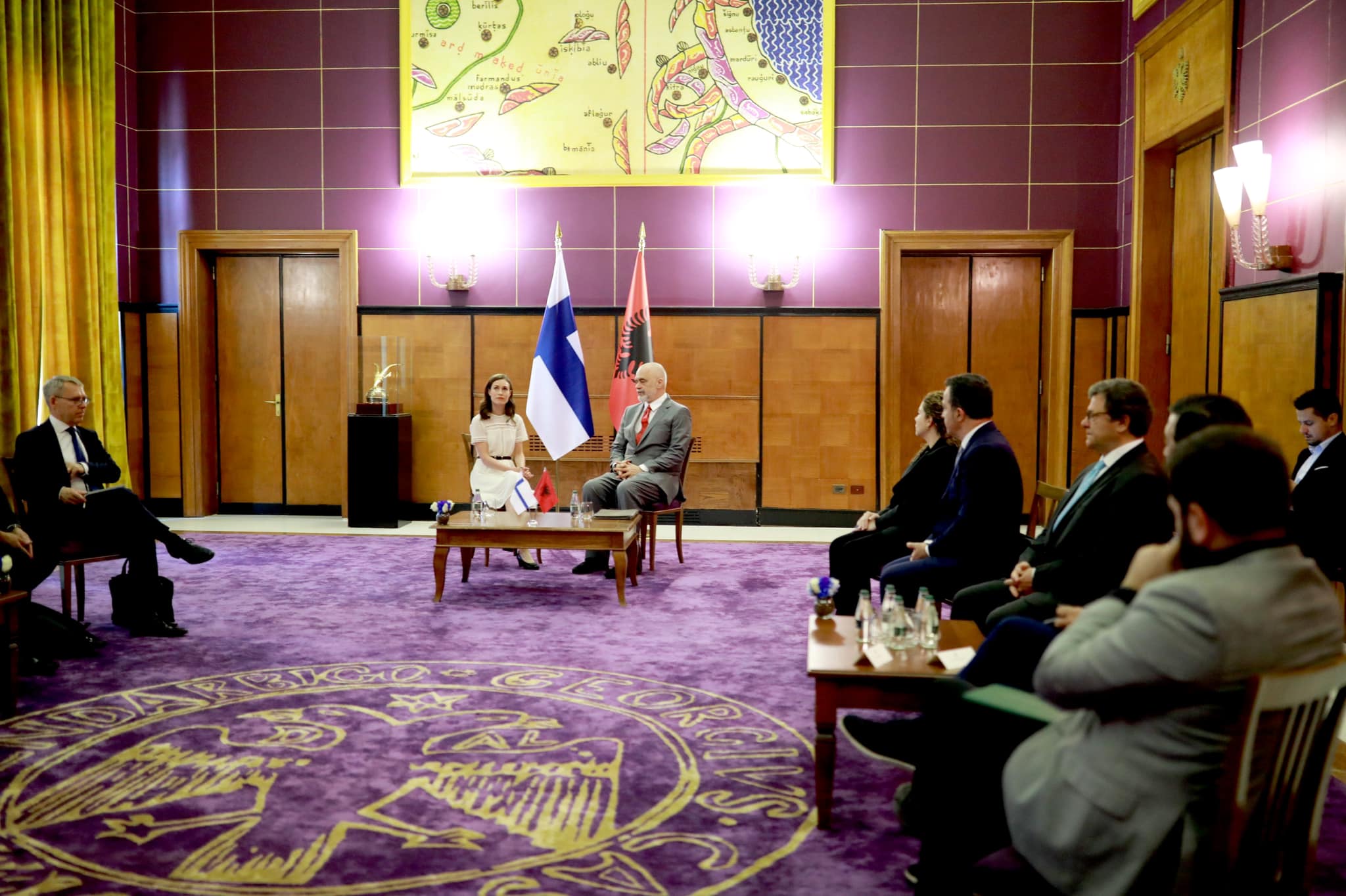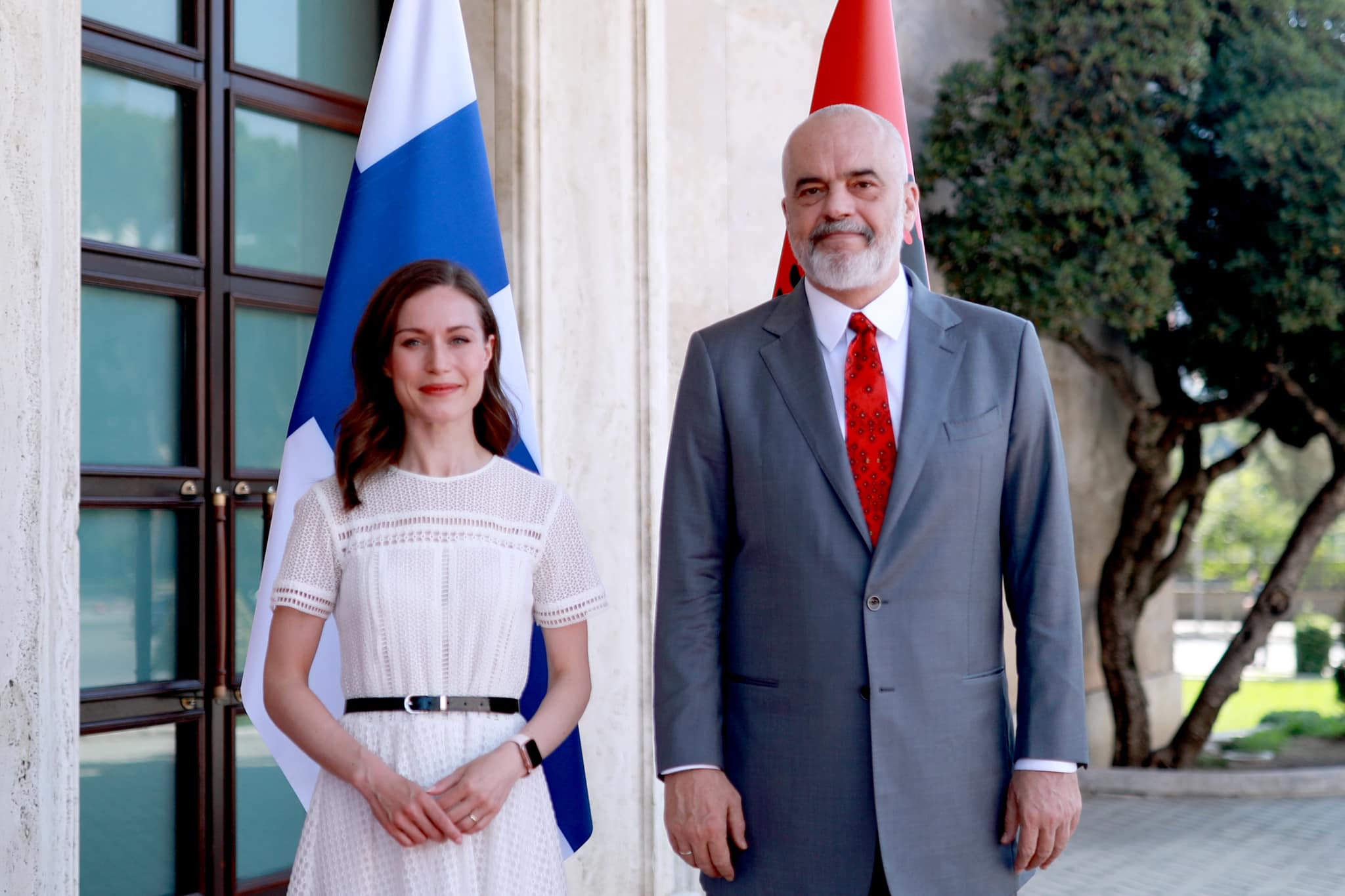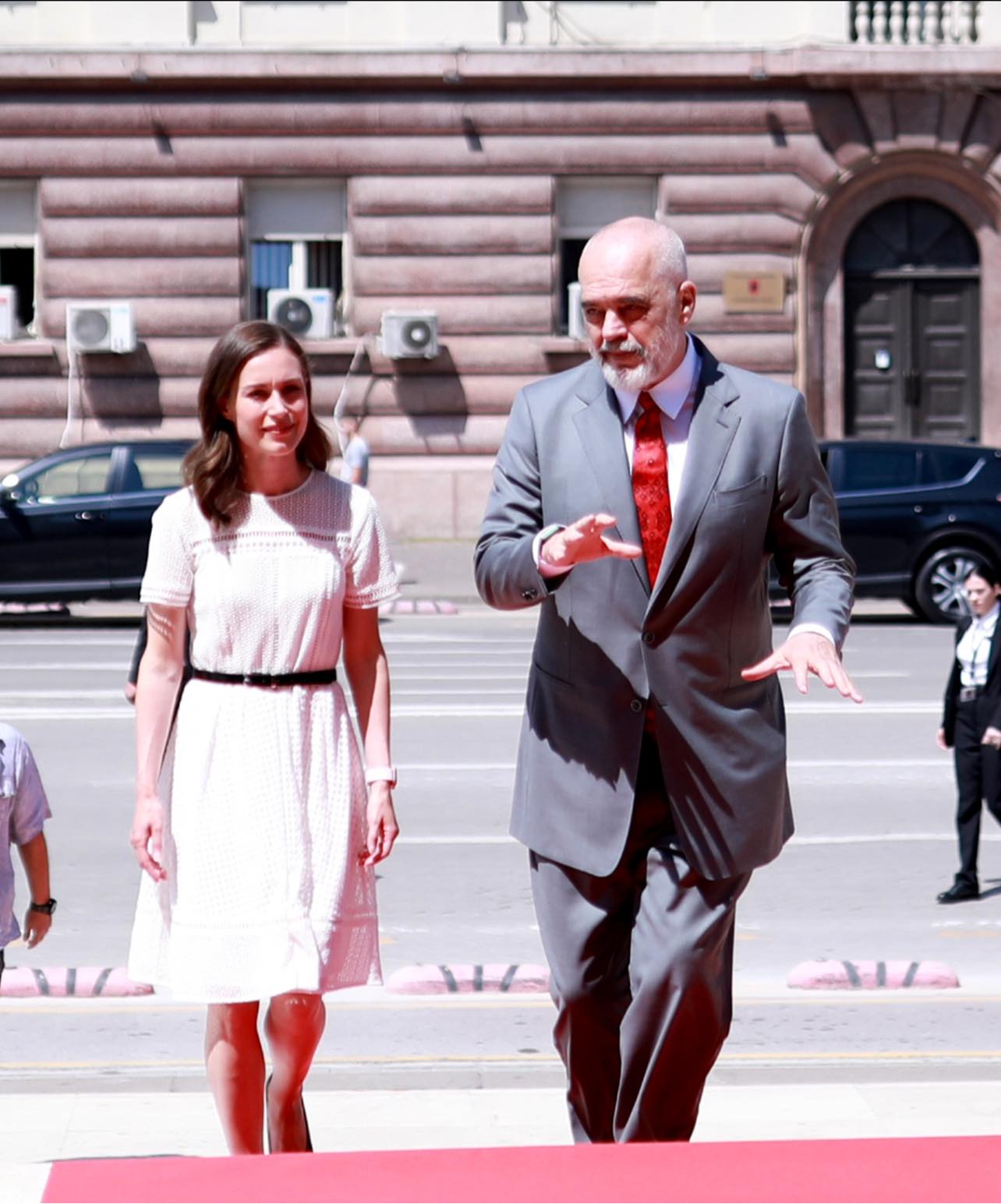 Kryeministrja e Finlandës, Sanna Marin sot zhvilloi një vizitë zyrtare në Tiranë, ku u prit nga homologu i saj, Edi Rama. Kreu i qeverisë ka publikuar në facebook disa foto nga ceremonina e pritjes. “Kënaqësi të mikprisja sot Kryeministren finlandeze Sanna Marin”, shkruan ai. Pas takimit, kryeministri Rama i ka treguar asaj zyrën e tij ndërsa në foto duket edhe momenti kur i dhuron një roman të autores Lea Ypi, “Free”.