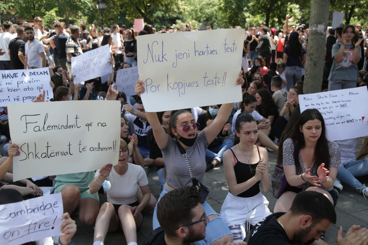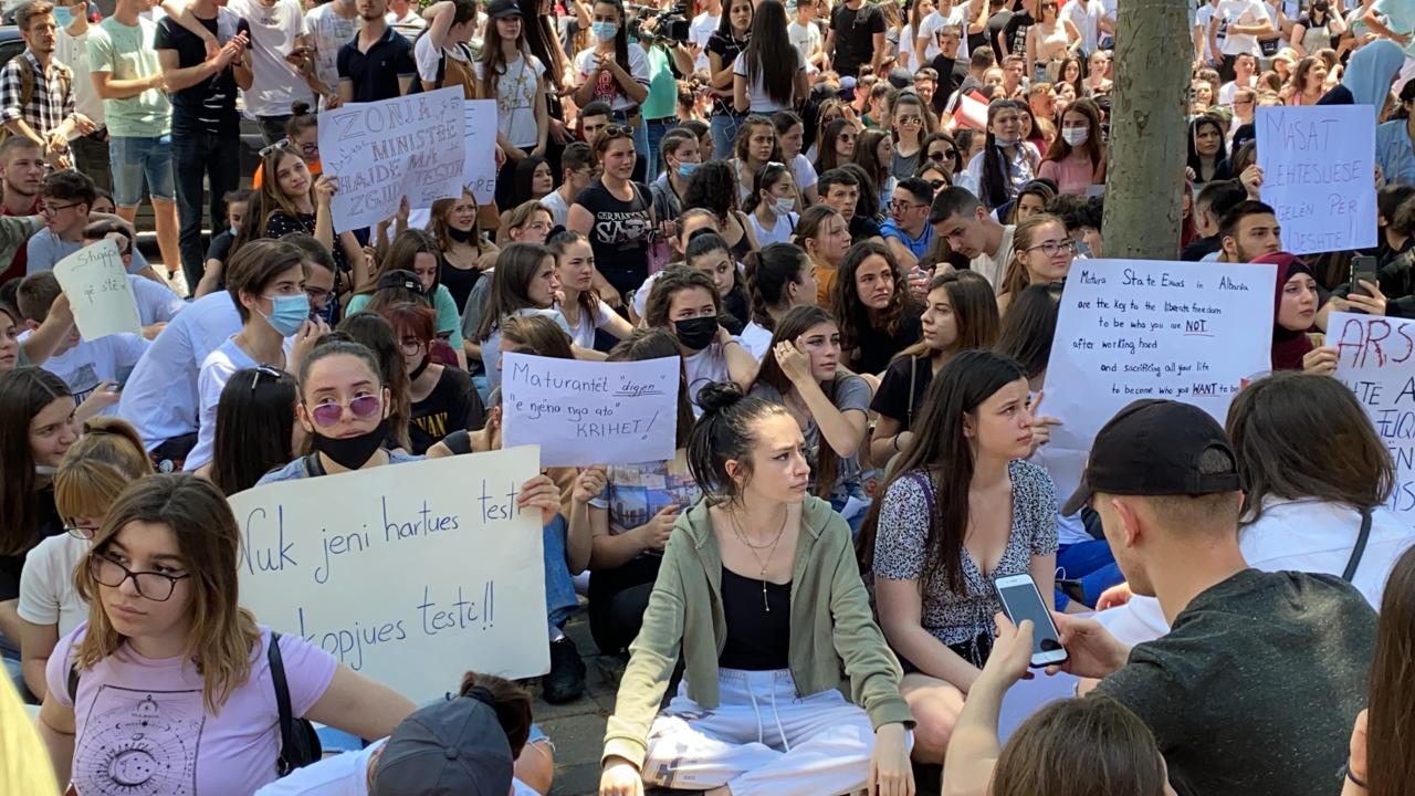 Maturantët kërkojnë që të ulet pikësimi për testin e Matematikës, i cili u zhvillua dje ndërkohë që ata pretendojnë se në këtë provim pati pyetje jashtë programit mësimor. “Uljen e pikësimit, provimi ishte i vështirë, pasi ishte një test universitar. Kjo është mënyra jonë. Do vazhdojmë të rrimë këtu deri sa të na plotësohen kërkesat”, tha një maturant.