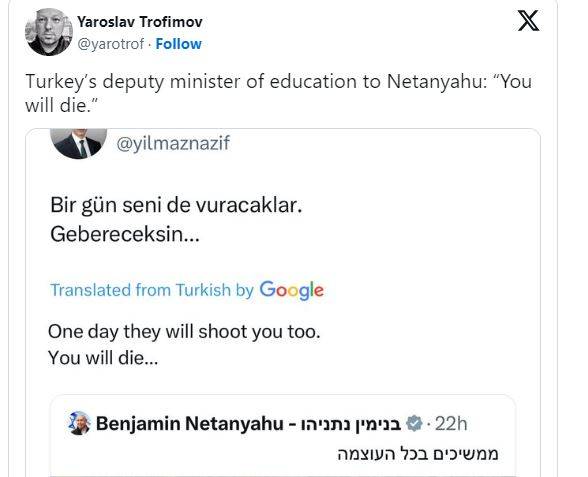 Zëvendës ministri turk i Arsimit, Nazif Yilmaz: Do të vrasin dhe kryeministrin izraelit!