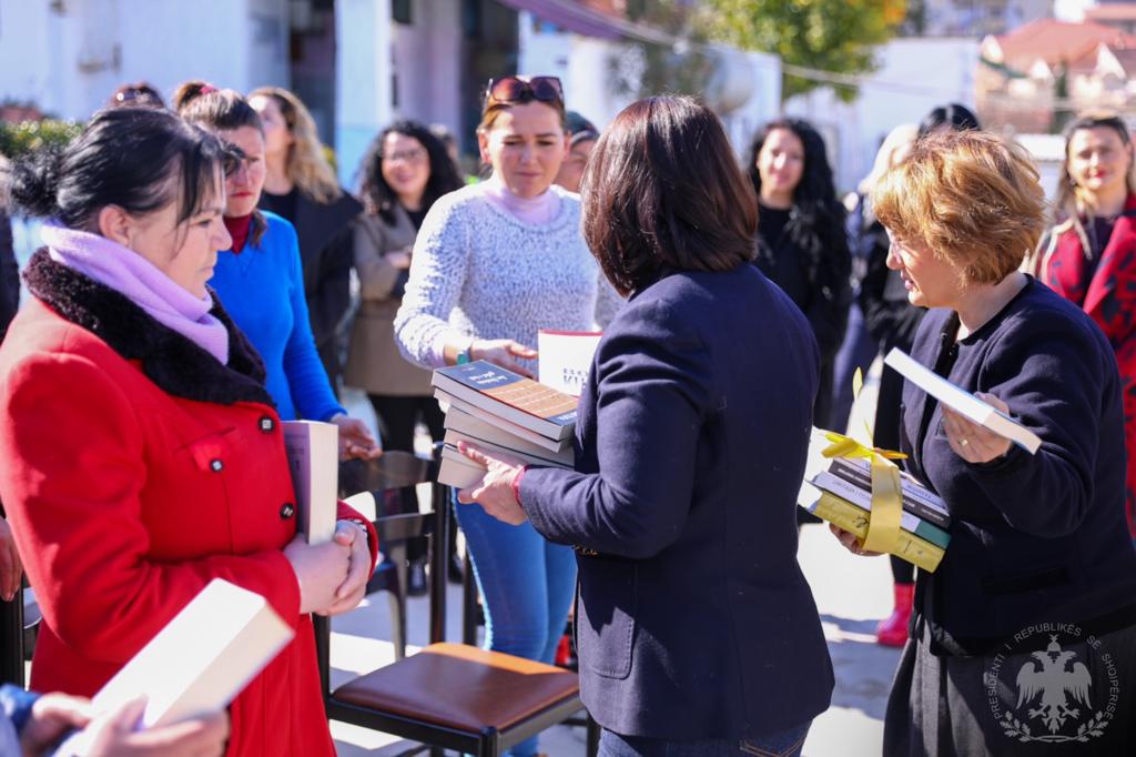 Në fund të takimit, Zonja e Parë dhuroi disa libra të cilat shkuan për fondin e bibliotekës së burgut “Ali Demi”.