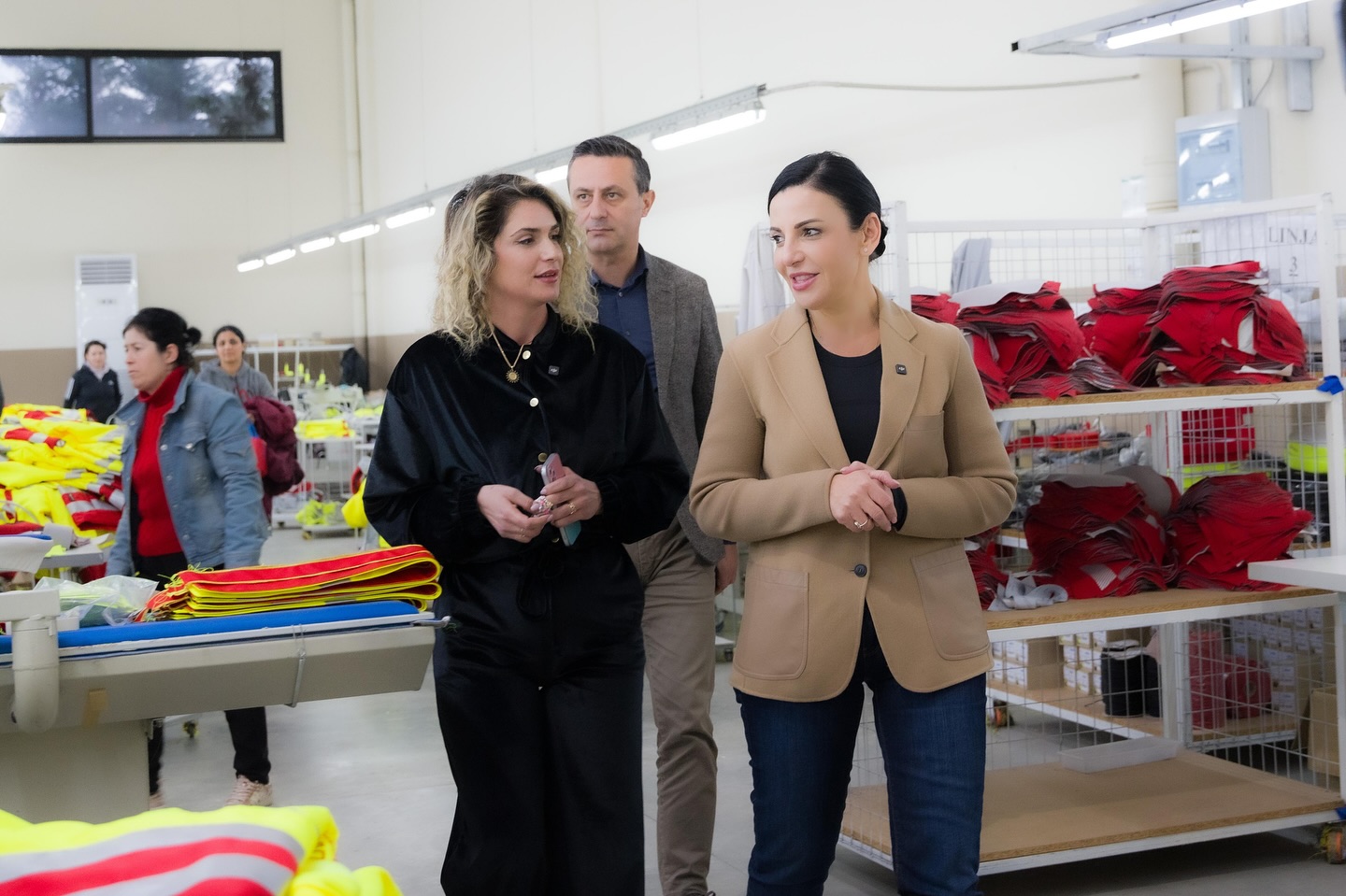 Pas vizitës së sotme te “Intex” ajo shkruan: “Fier-Portëz .Së bashku me Ceno Klosin vizituam fasonerinë Intex, ku janë të punësuar mbi 200 gra e vajza, banore të qarkut Fier. Një sipërmarrje, e nisur në vitin 2020, që sot prodhon për kompani gjermane dhe çeke.