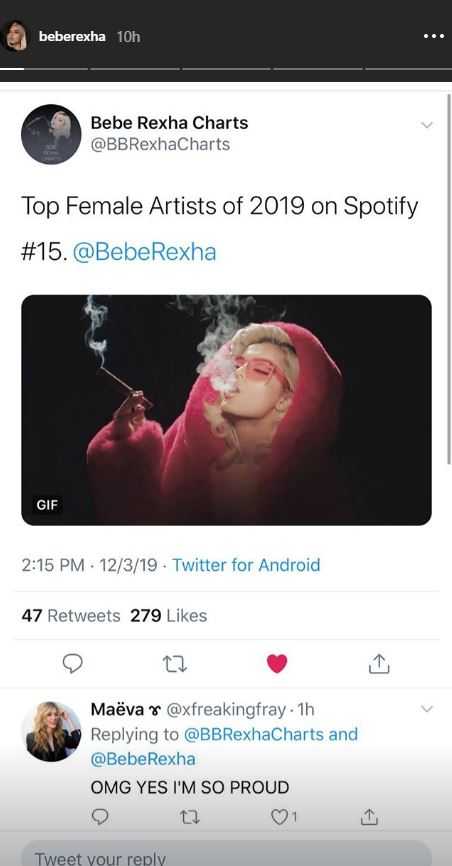 Lajmin e ka bërë të ditur vet Bebe përmes një postimi në “Instastory”.