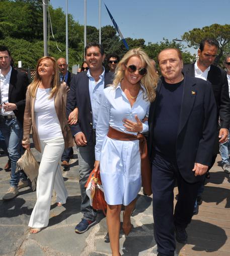 - Silvio Berlusconi, accompagnato da Francesca Pascale, è a Bocca di Magra (La Spezia) con il candidato alla presidenza della Regione Liguria Giovanni Toti e la moglie, la giornalista Siria Magri, 31 maggio 2015. Il Cavaliere si è fermato al porto per un aperitivo, poi pranzerà in un ristorante di Ameglia. ANSA/ PAOLO ZEGGIO