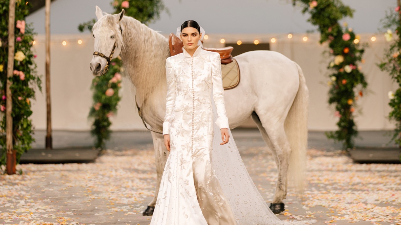 Shfaqja u mbyll me nusen tradicionale Chanel që mbërriti mbi një kalë dhe e veshur me një fustan saten të butë, të stilit 1920, të qëndisur me flutura.