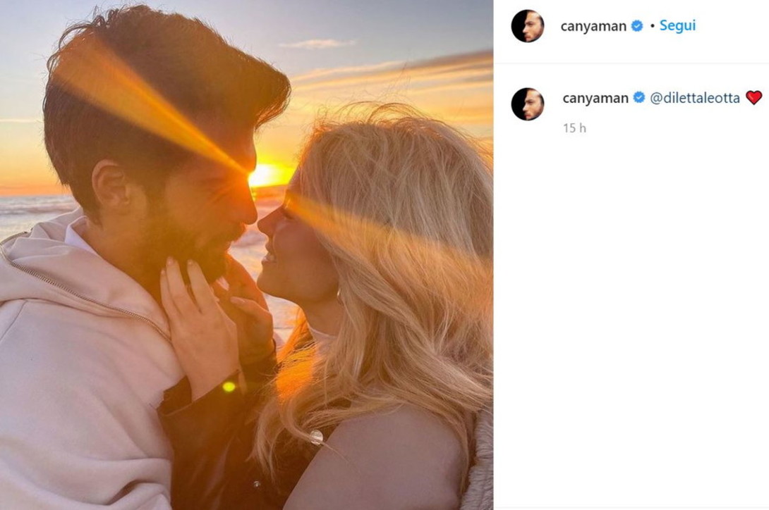 Çifti shfaqet në një perëndim dielli gati duke u puthur dhe fotoja publikohet më 14 shkurt në ditën e të dashuruarve. Aktori turk në krah të fotos ka vendosur një zemër.