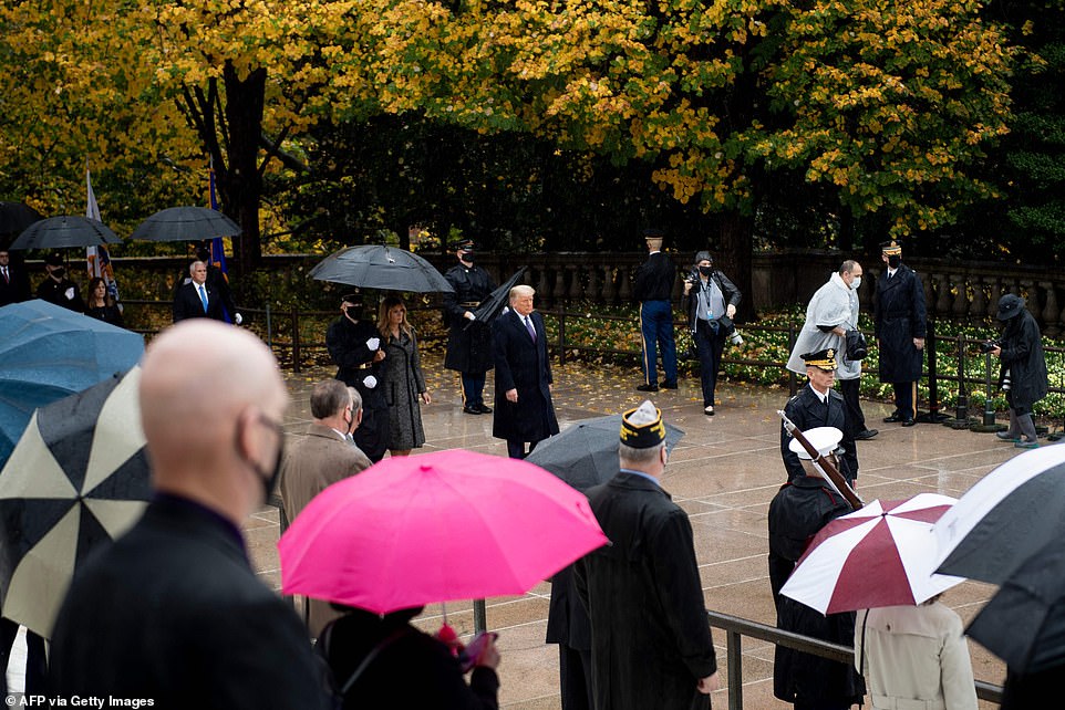 Në këtë dalje të parë pas zgjedhjeve, zonja e parë u shoqërua nga një ushtarak, i cili mbante maskë në fytyrë, teksa shoqëronte Melanian gjatë vizitës në Varrezat Kombëtare të Arlington.