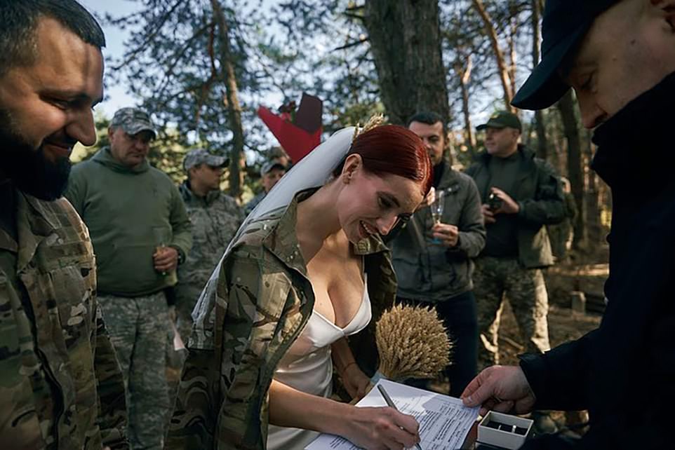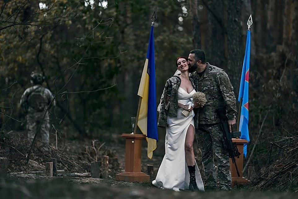 Vendi i saj është i luftuar nga Rusia, dhe 31-vjeçarja Evhenia Emerald është në vijën e parë të frontit të luftës në Ukrainë, aty ku shërben si snajpere. Por ajo ka gjetur mundësinë, pa u larguar nga detyrat e saj në luftë, të martohet në një ceremoni modeste në një pyll në Kharkiv me Evheniy Stypaniuk.