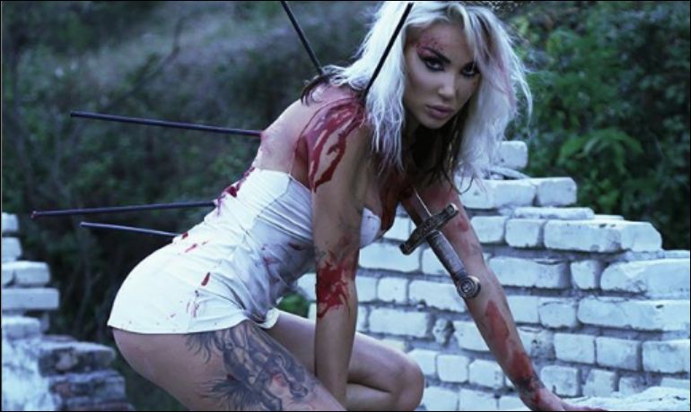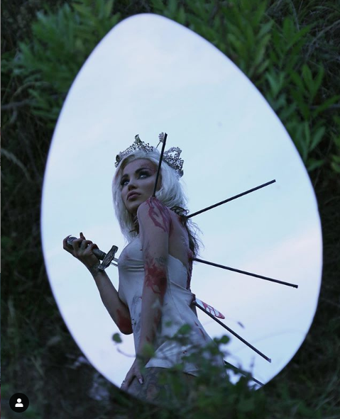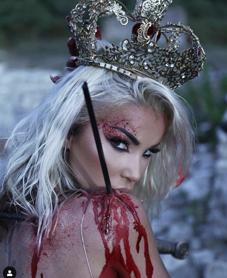 Moderatorja shqiptare është shfaqur krejtësisht ndryshe, duke improvizuar në trupin e saj disa shigjeta pas shpinës, pamjen e një njeriu të plagosur, por me kurorë në kokë.