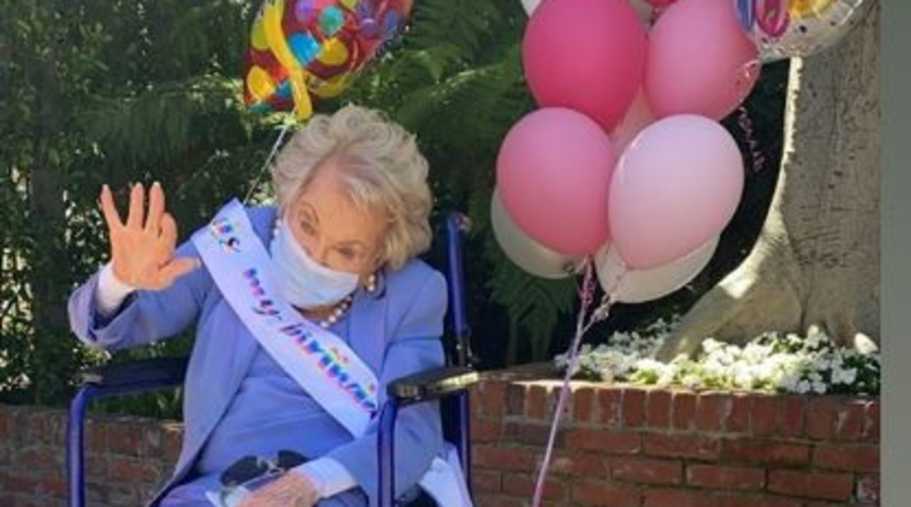 E ulur në një karrocë e rrethuar nga tullumbacet me ngjyra dhe e mbuluar me maskë, siç e kërkon emergjenca e koronavirusit. Kështu Anne Buydens, e veja e Kirk Douglas, që vdiq në 6 shkurt në moshën 103 vjecare, feston 101 vjetorin e ditëlindjes.