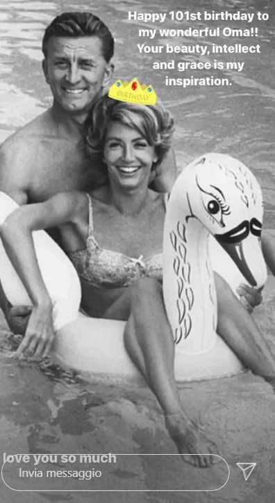 Kjo është ditëlindja e saj e parë pa bashkëshortin e dashur dhe ka qenë pikërisht nipi Cameron Douglas që ka organizuar festën dhe ka shpërndarë fotot në Instagram. Edhe ajo e kaloi një shekull jetë, duke qenë për 65 vjet një bashkëshorte e devotshme dhe e dashuruar me aktorin e ‘Spartacus’, me të cilin ishte martuar në 1954.