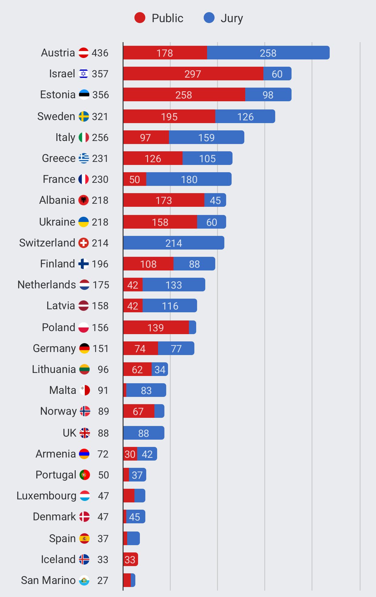 Por duhet theksuar se shumë juri votuan politikisht dhe jo nisur nga përformanca artistike. Shtetet nordike dhe ato lindore nuk na dhanë asnjë pikë. Pra as edhe një pikë, kur vota e publikut na dha vend të pestë. Nga 37 shtete që votuan si juri, 27 vende nuk na dhanë asgjë. Një smirë e tmerrshme në një Europë të madhe.