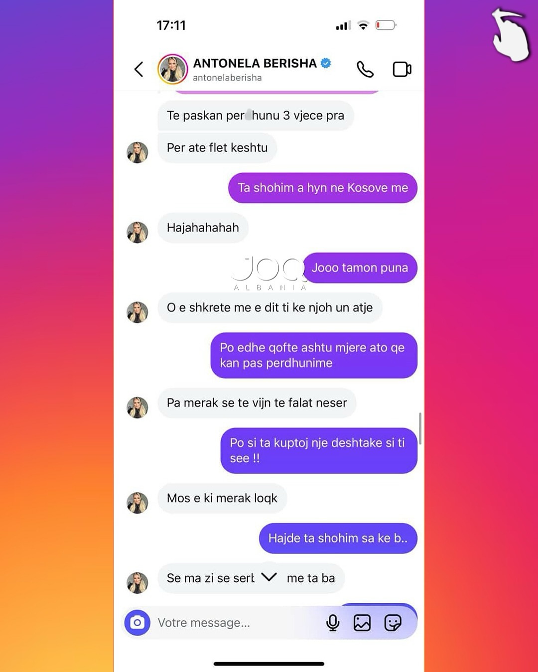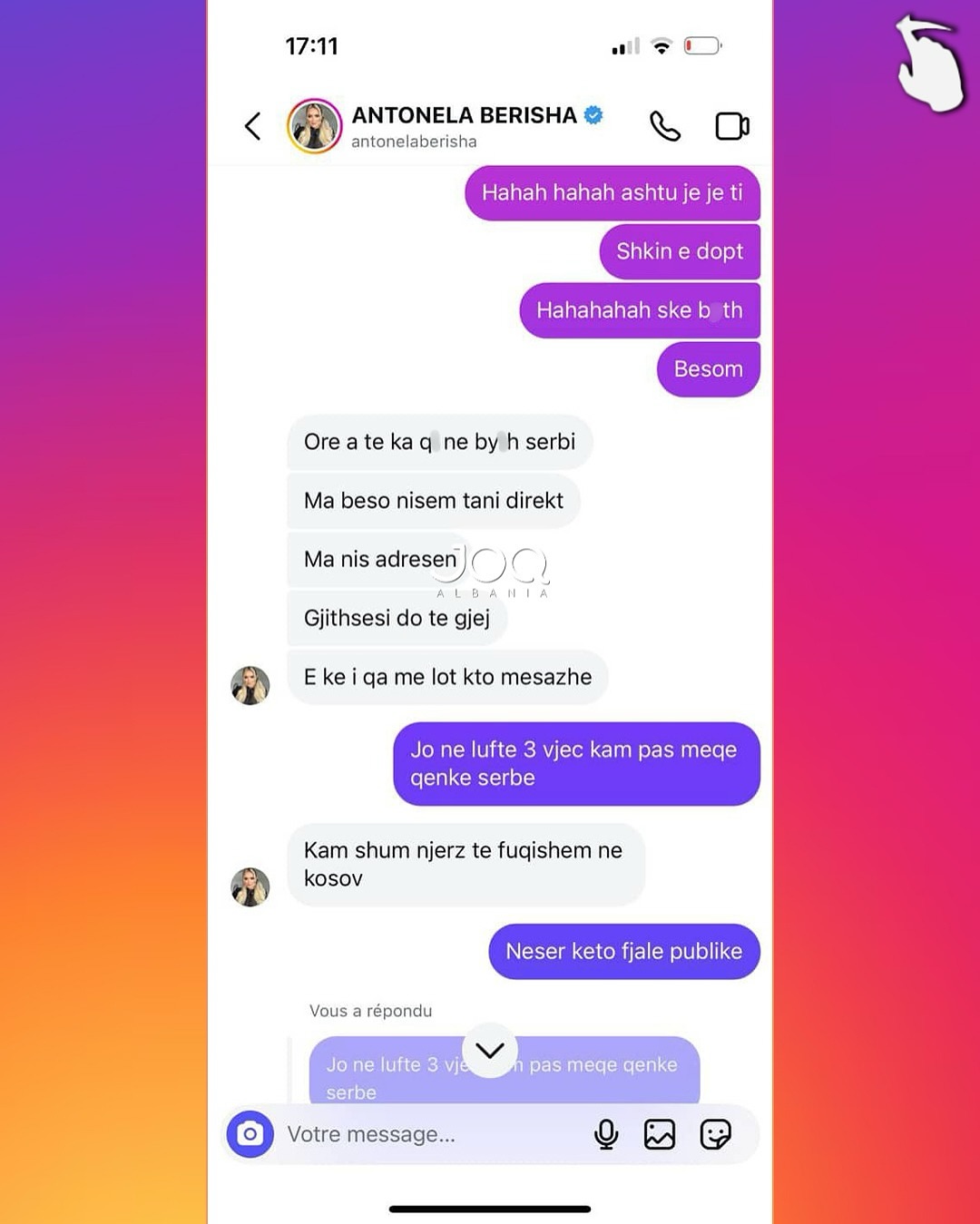 FOTO/ ”Ju ka dhu*uar serbi, më zi do të ta bëj”, Antonela në mesazhe skandaloze kundër një vajze nga Peja