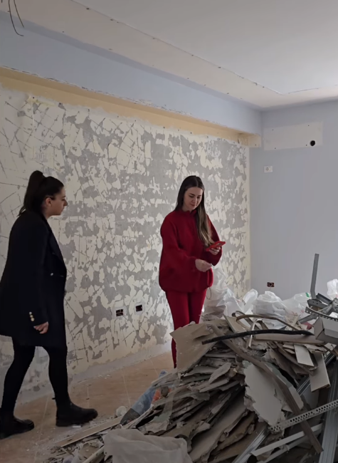 Në fillim të videos, Kiara shfaq pamjet e para të shtëpisë – një ambient i zbrazët, me mure të thjeshta dhe pa mobilie. Hapësira dukej neutrale dhe pa jetë, duke i dhënë ndjekësve një ide të qartë të gjendjes në të cilën e kanë marrë shtëpinë.