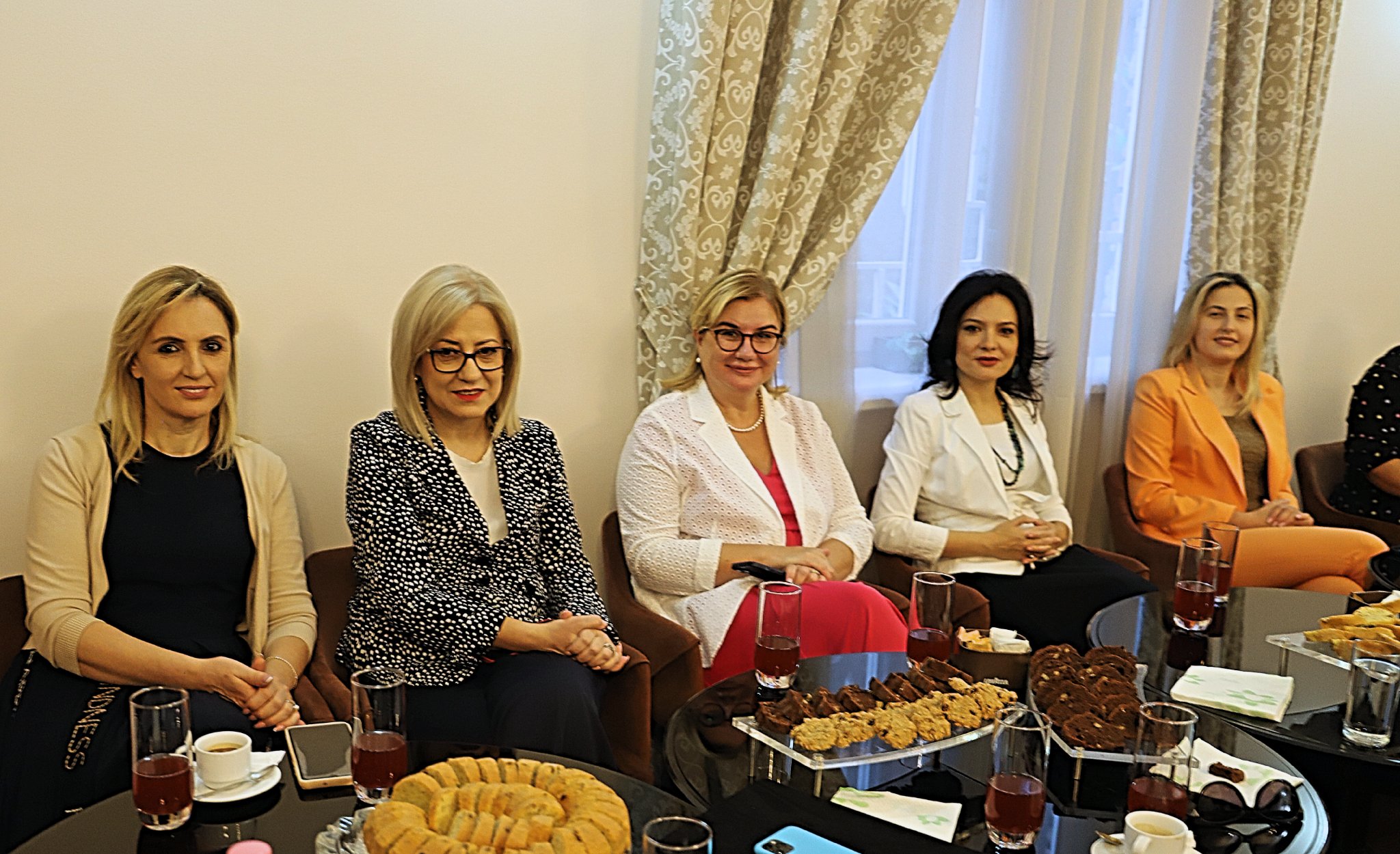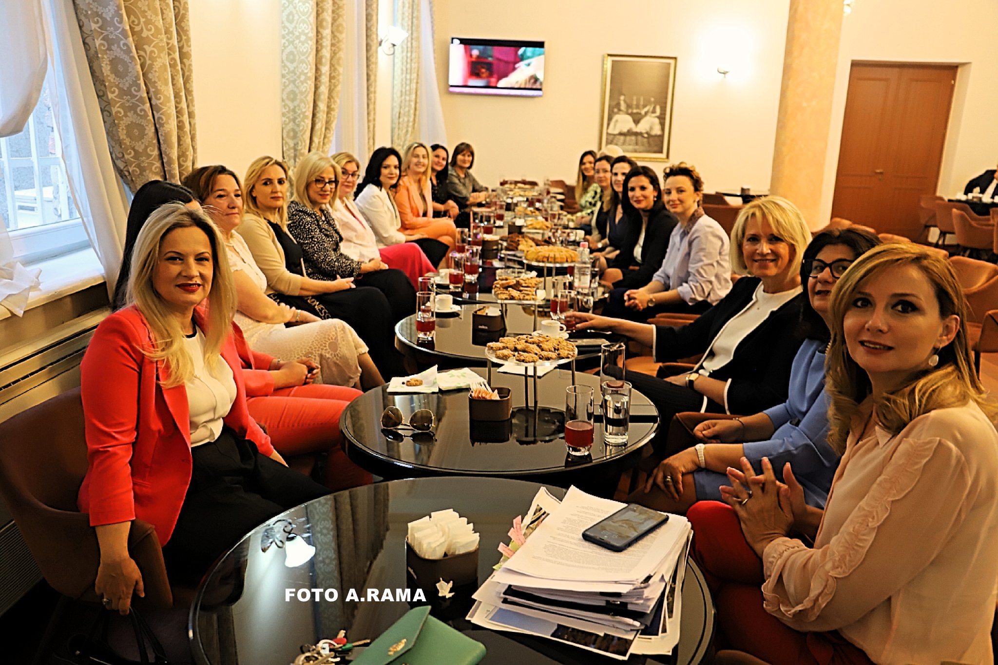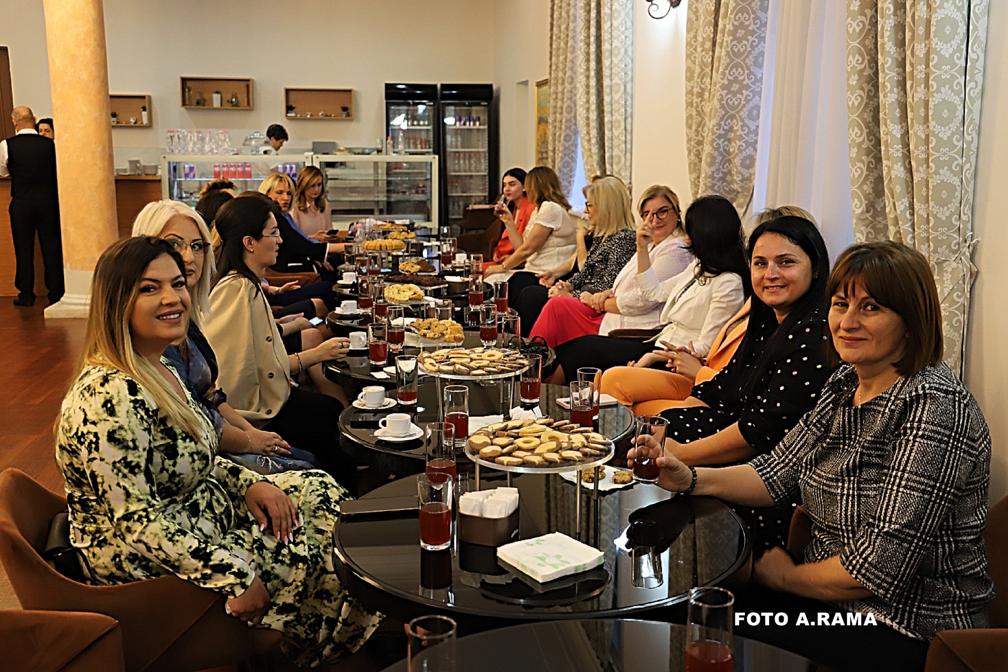 Deputetet socialiste dhe ato demokrate janë bashkuar në një tavolinë me kryetaren e Kuvendit Lindita Nikolla duke ia shtruar me embëlsira dhe pije.