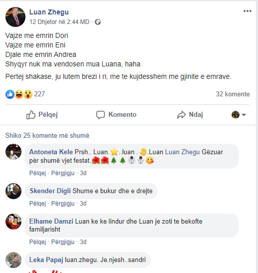 Postimet e mashtruesit nën emrin e Luan Zhegut në Facebook: