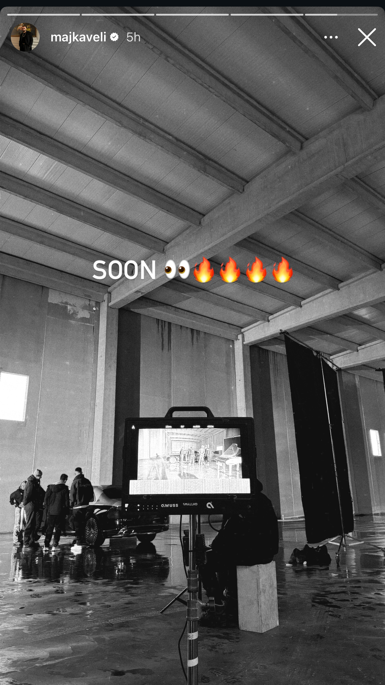 Majk ka ndezur menjëherë kuriozitetin e fansave të tij, pasi publikoi një foto bardhe-e-zi nga një set xhirimi, duke lënë të kuptohet se diçka e madhe po vjen shumë shpejt. Në imazh shihet një ambient i gjerë industrial me tavane të larta, një ekip i pozicionuar pranë një veture luksoze dhe një monitor profesional filmik që tregon se skena po realizohet me seriozitet të plotë.