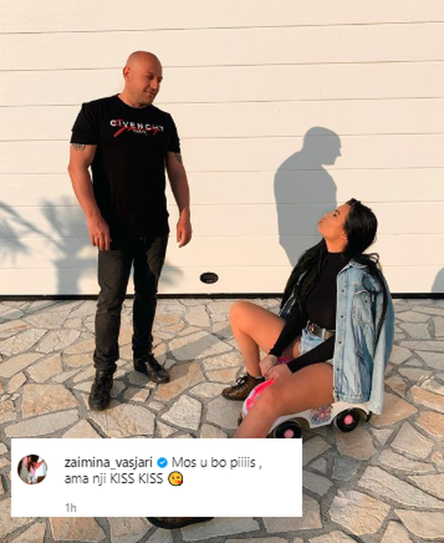 Si përshkrim për foton ajo ka zgjedhur një pjesë nga kënga e Lumi B dhe Ledri Vulës “Kiss Kiss”. “Mos u bo pis, ama një kiss kiss”, shkruan Zaimina dhe fotoja ka marrë shumë pëlqime dhe komente nga ndjekësit e saj.