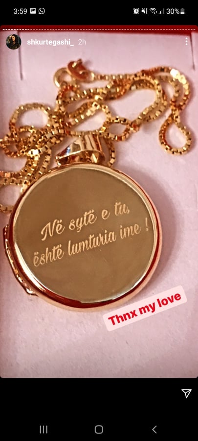 Gjithashtu Alberti i ka bërë një varse dhuratë këngëtares, në të cilën i ka bërë dhe një dedikim shumë romantik. “Në sytë e tu është lumturia ime”, ka shkruar ai në varse.