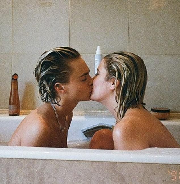 Në vaskë duke u puthur, modelja i shpreh ndjenjat të dashurës