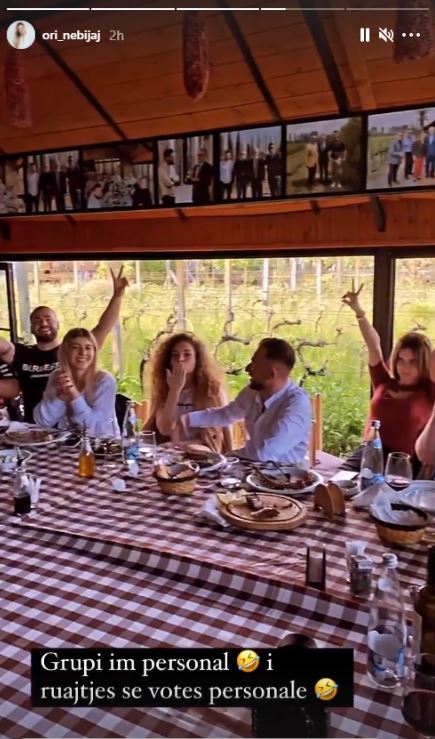 Përmes një video të postuar në Instastory, Nebijaj shihet duke drekuar më një grup të rinjësh, ndërkohë që në video shkruan se është grupi i saj për ruajtjen e votës. “Grupi im personal i ruajtjes së votës personale”, shkruhet në video.