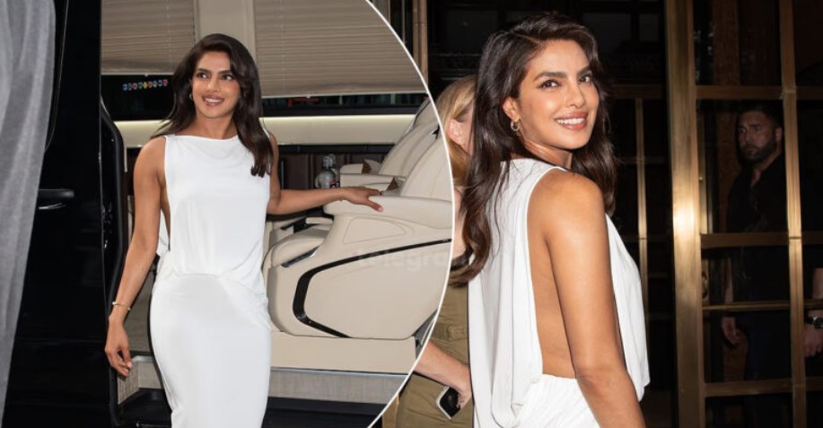 E veshur me një fustan të bardhë elegant me detaje të prera dhe një çarje joshëse deri në kofshë, Priyanka u shfaq plot stil dhe vetëbesim në tapetin e kuq.