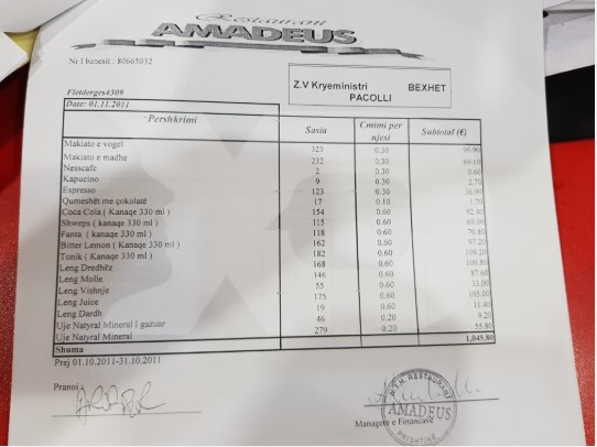 Më herët mediat kishin publikuar disa shifra të cilat tregojnë se zëvendëskryeministri i Kosovës, Behgjet Pacolli, vetëm gjatë një muaji kishte porositur rreth 344 pije të llojit Schweppes.