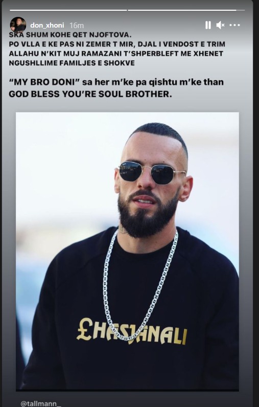 Edhe reperi Don Xhoni ka reaguar pas vrasjes së Mehmet Qemës. Ai shkuar se nuk kishte shumë kohë që e njihte mirëpo ka arritur ta kuptojë se zemrën e ka pasur të mirë. Ndër të tjera, ai shkruan Qema e thërriste ”my bro doni” sa herë që e shikonte e se i uronte më të mirat. 27-vjeçari Mehmet Qema, të cilit i thërrisnin me pseudonimin “Tallman”, mbeti i vrarë nga shoku i tij Marius Dema 28-vjeç.