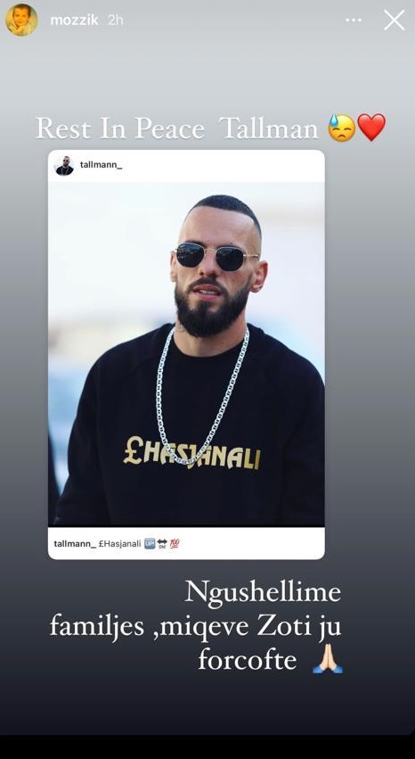 “Ngushëllime familjes Qema nga Hasi. Thjesht s’po mund ta besoj çfarë paska ndodhur. U prehsh në paqe Tallman”, thuhet në dedikimin e Getinjo. “Nuk mund ta besoj. U prehsh në paqe. Nuk di çfarë të them”, ka shkruar BabyGee. “Prehu në paqe Tallman. Ngushëllime familjes, miqve, Zoti iu forcoftë”, ka shkruar Mozzik në mesazhin e tij të ngushëllimit.