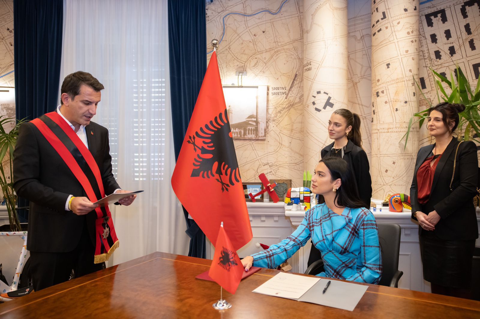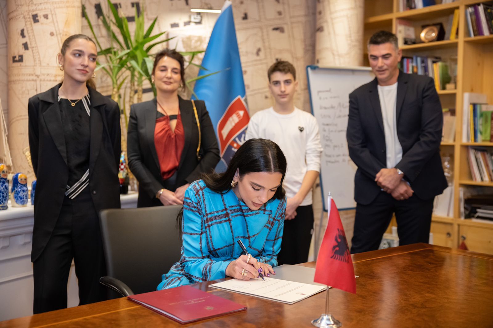 Në vigjilje të koncertit të madh për 110 vjetorin e Ditës së Pavarësisë, që do të mbahet nesër në sheshin “Skënderbej”, këngëtarja Dua Lipa u betua si shtetasja më e re shqiptare para kryetarit të Bashkisë së Tiranës, Erion Veliaj, në një ceremoni të veçantë.