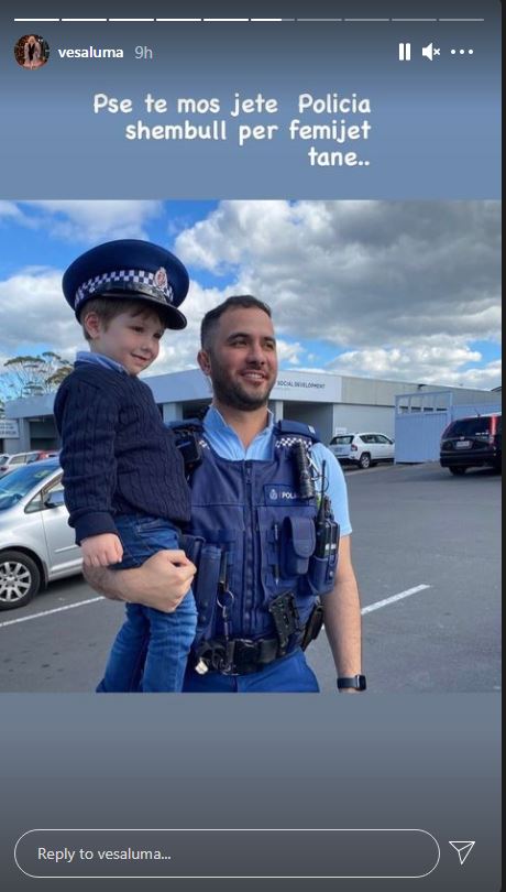Gjithashtu Vesa ka publikuar dhe një foto të së birit me policin e Zelandës së Re, dërsa kërkon që polica të jetë shembull për brezat e të ardhmes.