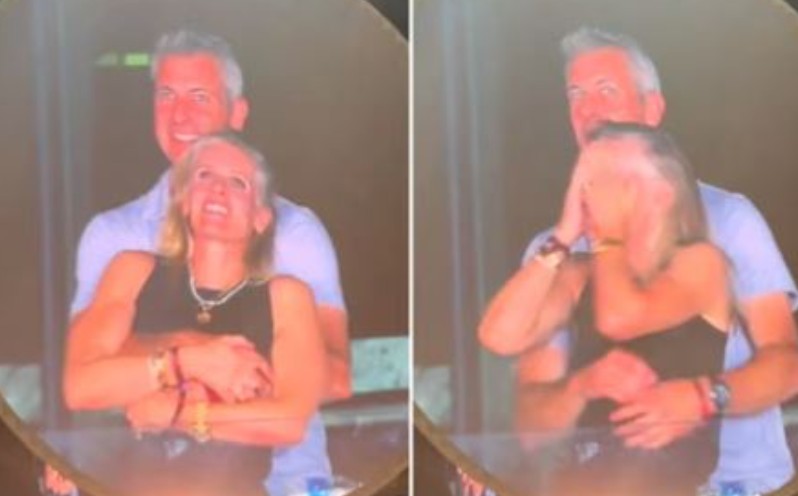 Klipi i bërë viral tregonte dy kolegët duke u përqafuar në një ekran gjigant në arenë përpara se të fshiheshin.